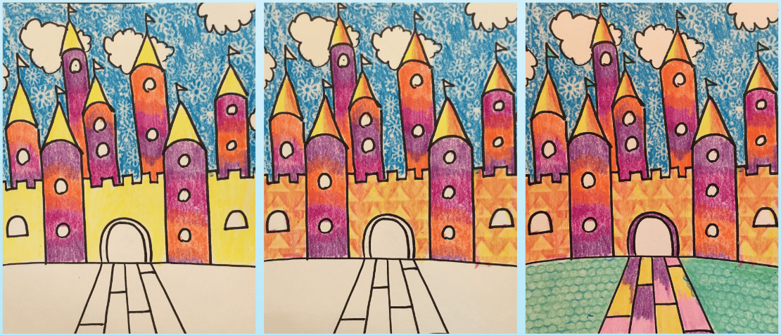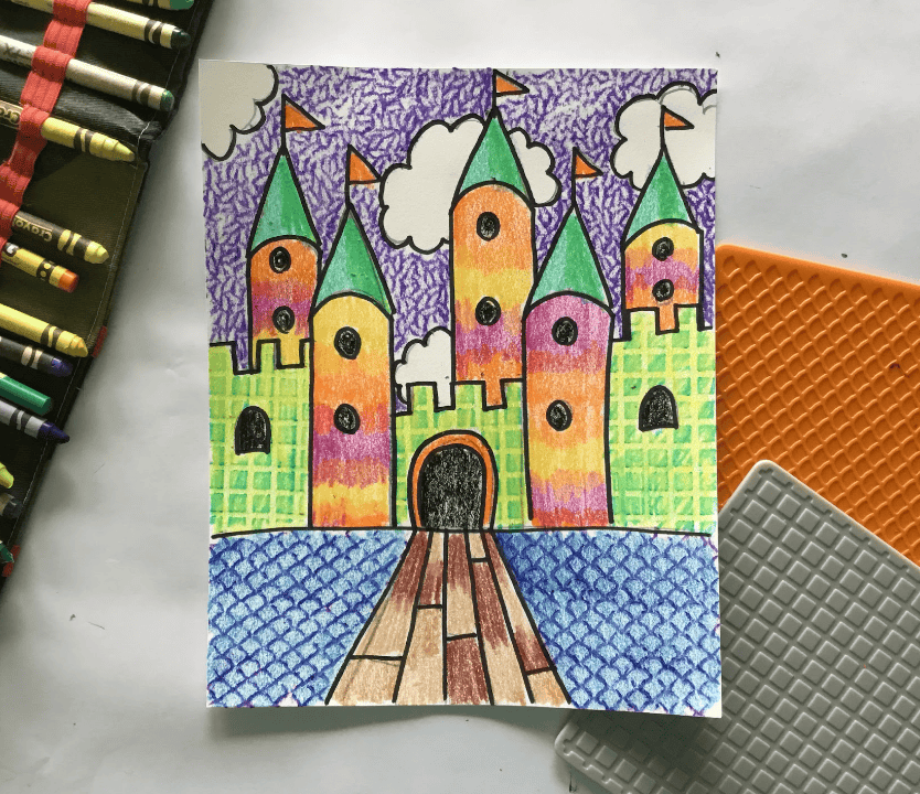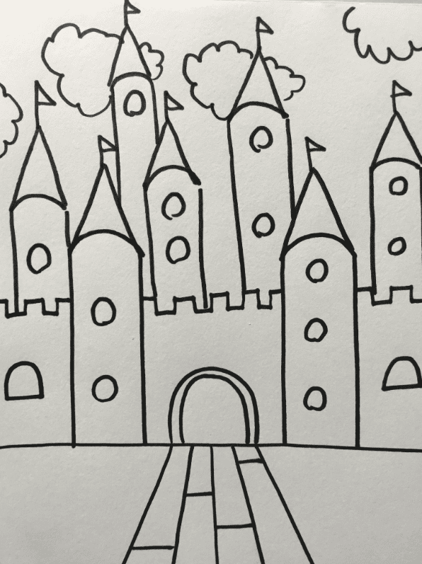 Draw a rainbow line connecting two of the vertical lines. This will create two towers for the castle.