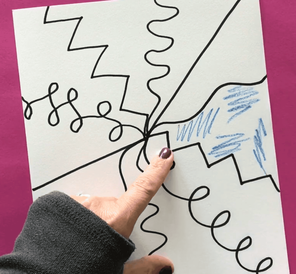 Step Three. Draw your lines. Draw a dot in the middle of your paper, be creative with the line patterns you choose, and bold your lines with sharpie.