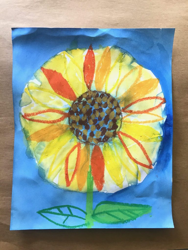 Place coffee filter onto paper using water. Using yellow and blue semi moist tempera cakes, paint on top of the coffee filters creating a ring of yellow and a center of blue. Paint any white paper left with blue paint (or other colors if available). Once dry, remove coffee filters. Add seeds, petals, stems, and […]