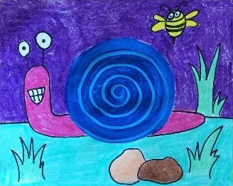 - Draw the snail with pencil first and then outline the pencil with a Sharpie marker.
