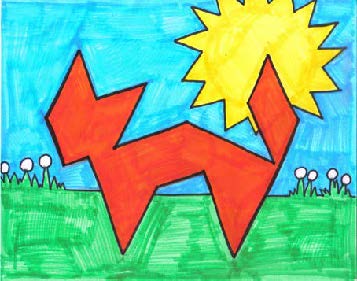 Students can enhance the outline in crayon by drawing over the pencil with a darker color. With a crayon, they can also add in a horizon line and some plants, flowers or trees.