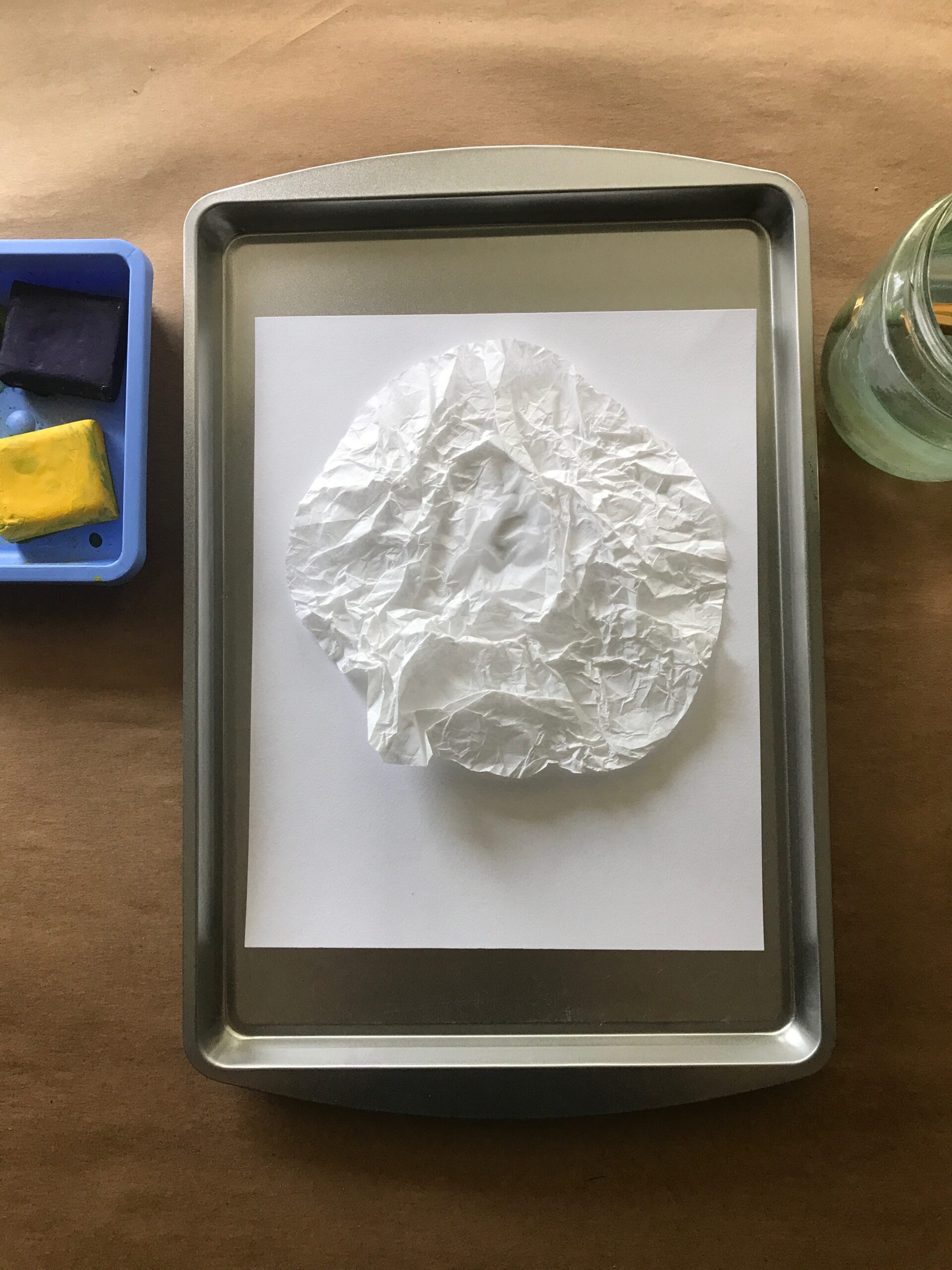 - Paint any white paper left with blue paint (or other colors if available).