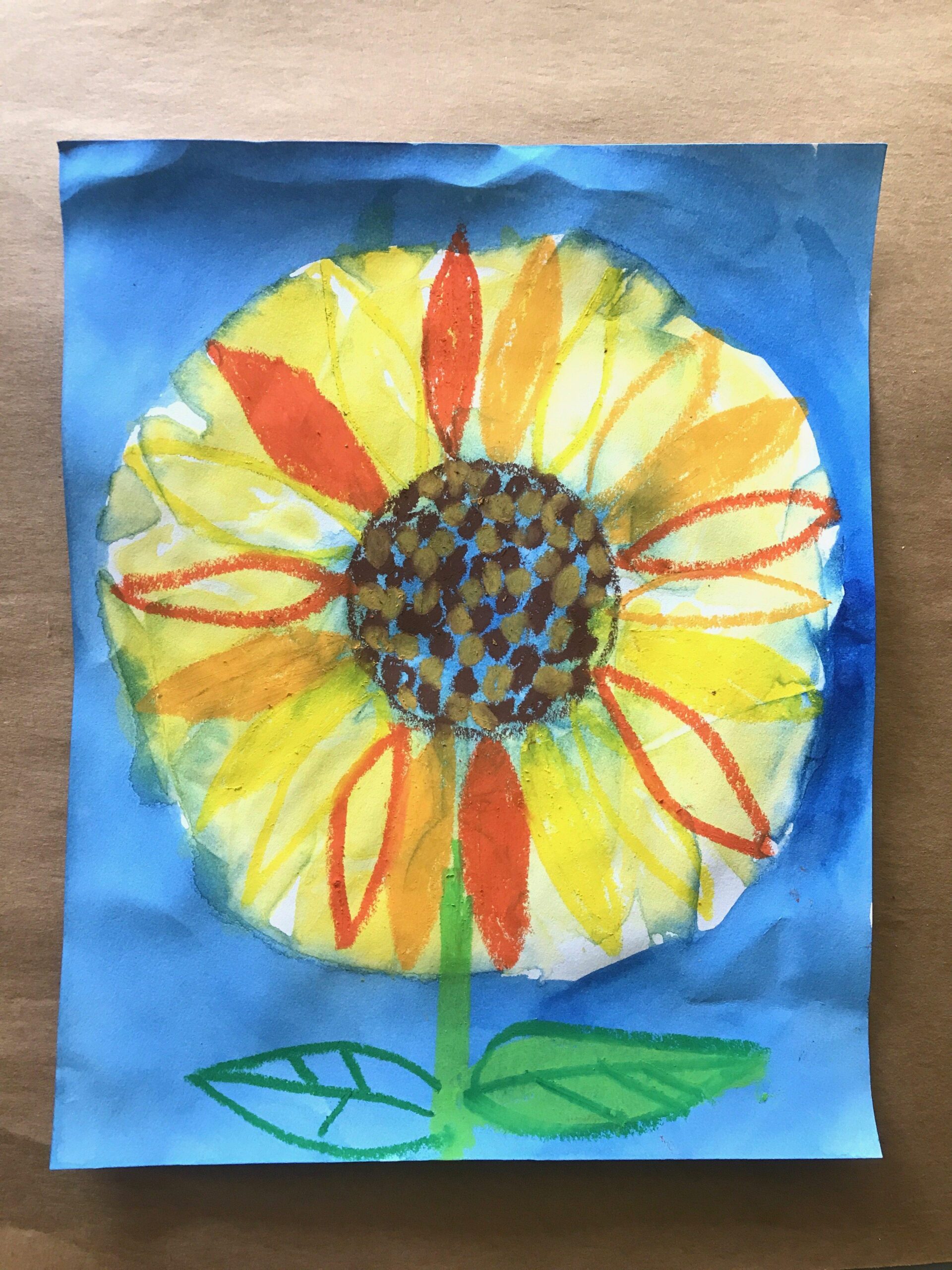 - Once dry, remove coffee filters. Add seeds, petals, stems, and leaves to the artworks with oil pastels.
