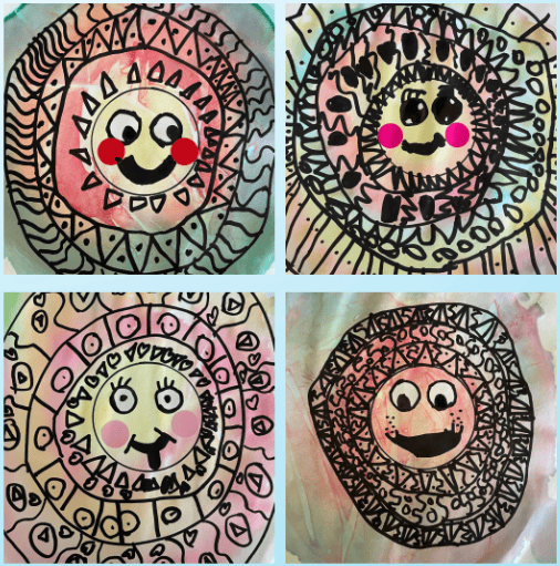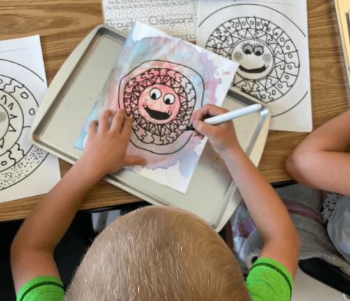 - After practicing, students will create the shapes and lines on their colorful background
