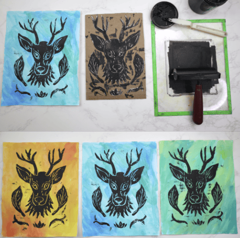 | Students will make multiple prints of their unreal animals. The teacher should encourage students to experiment using different painted backgrounds. |