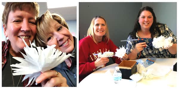 The Art to Remember team helped OTB prepare for the event by cleaning over 200 bottles and making 150 paper flowers, which will be used as centerpieces. While we were there, we also cleaned and organized several areas and touched up a mural. Our team loved this opportunity to give back to the community.