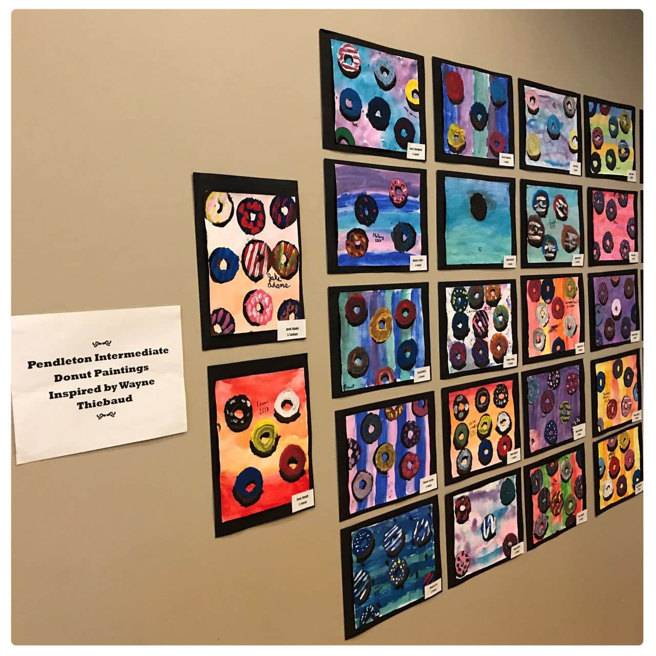 When Kristi Shrode started a new teaching position this year at Pendleton Elementary, she knew that she wanted to bring student artwork out into the community. After talking with other staff members, she worked with Quack Daddy Donuts, a local donut shop in Pendleton, Indiana, to put on an Art Gallery Night, which was open to not only parents of students, but also to the entire community.
