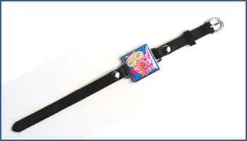 This black leather and silver bracelet with 1” square artwork is a beautiful gift for moms, grandmothers or aunts.