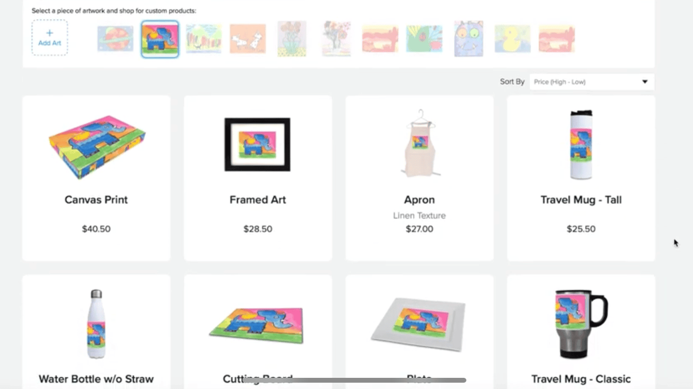 Once you’ve uploaded art into your gallery, you can edit the photos, share the artwork, and also put the artwork on keepsakes! We have over 50 products to choose from and every purchase supports art education!