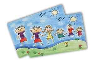 Kids LOVE stickers and a set includes 15 of them. Kids can trade them, stick them on their notebooks and folders, or stick them on the outside of holiday cards and packages. Each sticker is 2.1″ x 1.7″.