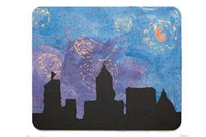 The glass cutting board is beautiful and really accentuates the child’s artwork. It’s made of scratch resistant glass and has beveled edges and non-skid feet. It’s a great size at 7.75″ x 11.75″.